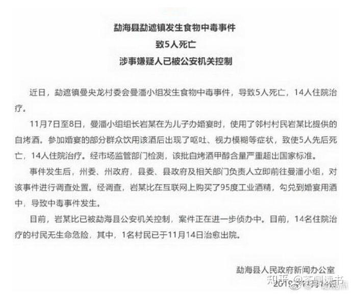 然而,2019年,西双版纳勐海县一次婚宴上,小贩在自烤酒里加入了工业酒精,结果是19人中毒,其中5人死亡。
