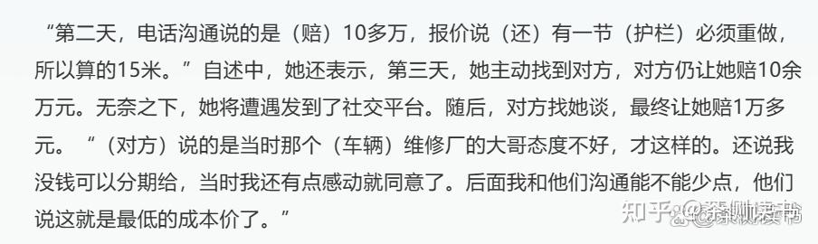 这价格太惊人,但是,施工方又拿不出报价单,女司机不能接受,说你去起诉我好了。