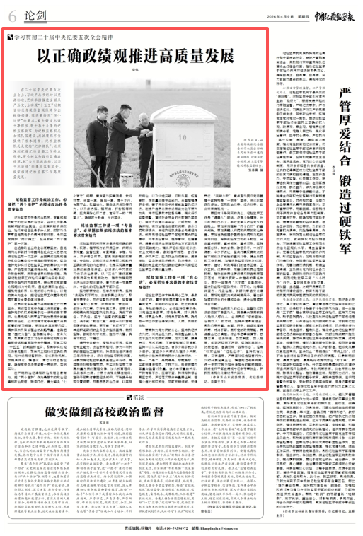 在二十届中央纪委五次全会上,习近平总书记对以更高标准、更实举措推进全面从严治党,为实现“十五五”时期目标任务提供坚强保障作出战略部署,强调要按照“四个过硬”的要求,着力锻造忠诚干净担当、敢于善于斗争的纪检监察铁军,为纪检监察机关加强队伍建设、忠诚履职尽责提供了根本遵循。纪检监察机关是党的“纪律部队”,必须深刻把握纪检监察工作特点规律,带头树立和践行正确政绩观,把“为人民出政绩、以实干出政绩”的要求落到实处,纵深推进纪检监察工作高质量发展。