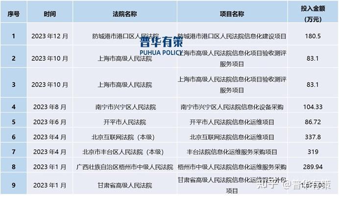 近期各地法院信息化建设相关项目投入情况